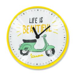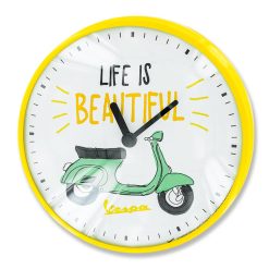 Wanduhr Piaggio Vespa life is beautiful gelb/weiss