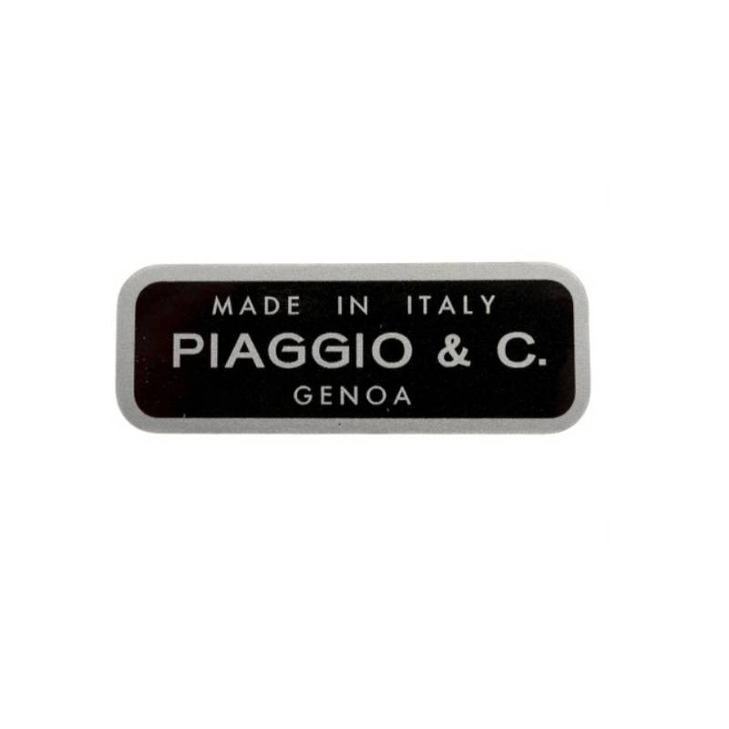 Aufkleber mit der Aufschrift „MADE IN ITALY PIAGGIO & C. GENOA“.