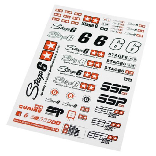 Neue Stage6-Maxi-Stickerbögen im DIN-A2- und -A4-Format. Jetzt mit Stage6-R/T-Logo. Ihr könnt aus 2 Ausführungen wählen, weiß (für dunkel lackierte Flächen) oder schwarz (für hell lackierte Flächen); beim kleinen Set gibt es nur eine Farbvariante.