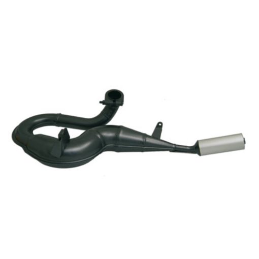 Auf den 208er Zylinder von Polini abgestimmte Rennauspuffanlage mit recht unauffälligem Design. Der dezente Aludämpfer versteckt sich rechts unter dem Motorblock.