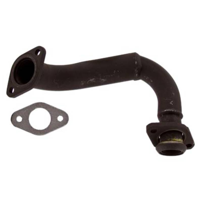 Ersatzkrümmer ohne Blindrohr wie er original an vielen Piaggio-Motoren verbaut ist. Wenn der originale Krümmer über ein Blindrohr verfügt lässt sich der Motor durch den Einsatz dieses Ersatzteils auch gleich entdrosseln.