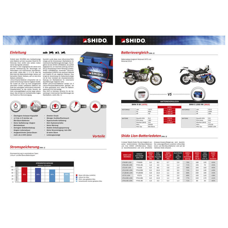Vorteilen : Gewichtseinsparung von 65 %, sicher und umweltfreundlich da keine Batteriesäure