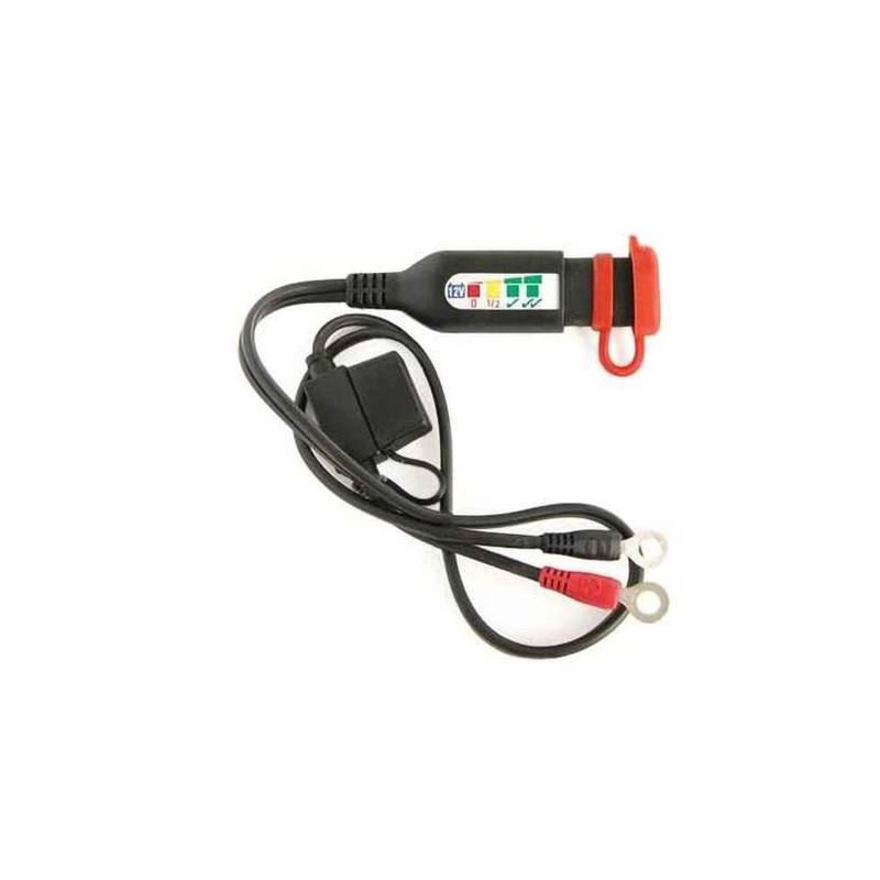 Das permanent verlegte Ladekabel aus dem Motorsport zeigt mit drei LEDs den Ladestatus jeder 12 V Batterie an. Der höhere Ladezustand von gekapselten AGM- bzw. Gel-Batterien wird durch eine 4. LED angezeigt. Die Stromaufnahme bei der Batterieüberwachung liegt unter 200 µA (0,0002 A).