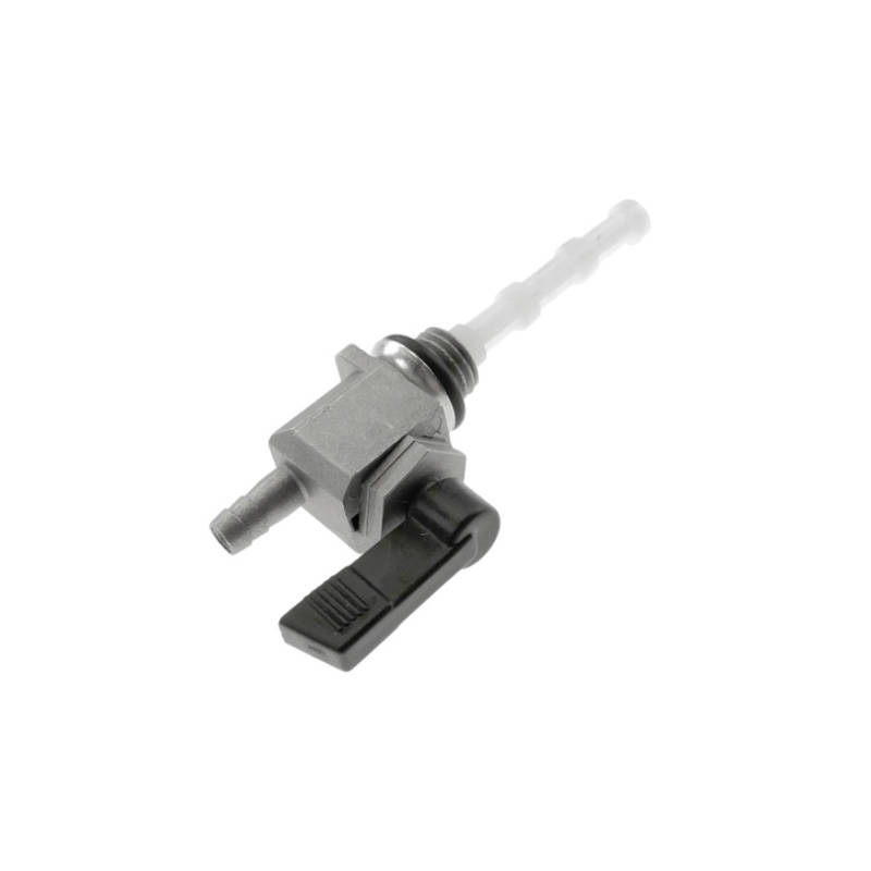 Universeller Benzinhahn mit geradem Abgang aus Aluminiumguss.