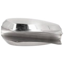 Im Bereich des Kraftstoffanschlusses kann eine leichte Verfärbung der Schweißnaht sichtbar sein – diese wurde werkseitig bewusst weniger stark poliert, um das feine Gewinde nicht zu beschädigen. Im eingebauten Zustand ist diese Stelle dank der Tankform kaum sichtbar.