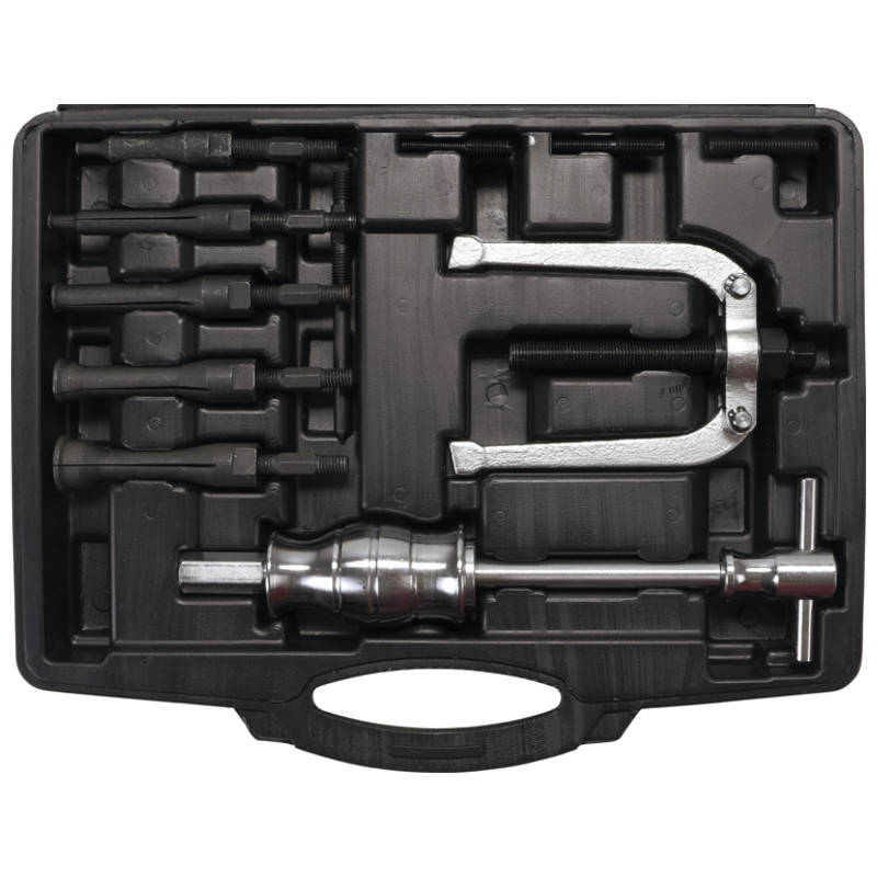 Das Set beinhaltet einerseits einen Zweiarm-Abzieher wie auch einen Gleithammer (umg. ‚Wichser‘ genannt). Sämtliche Aufsätze sind bei beiden Abziehern verwendbar.