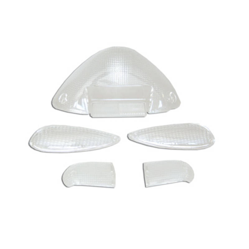 Das Set besteht aus 4 Blinkergläsern und der Rückleuchte. Wir empfehlen den Einsatz von farbigen Blinkerbirnen und einer roten Rücklichtbirne.