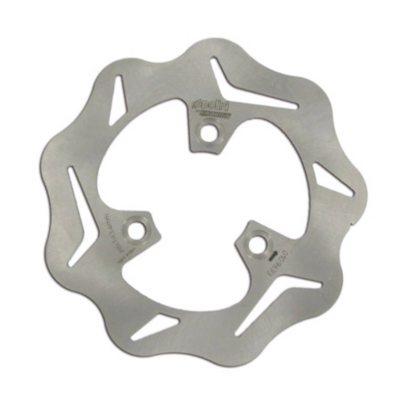 Bremsscheibe im angesagten und thermisch vorteilhaften Wave-Design aus dem Hause Polini. Als Ersatz für die originale Aerox-Bremsscheibe.