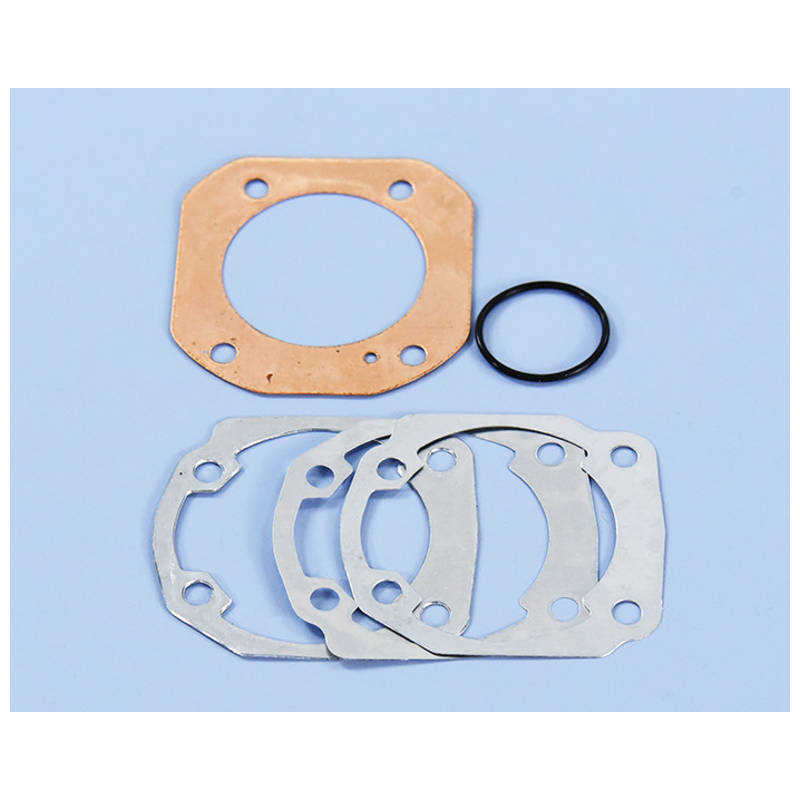 Das Dichtset besteht aus drei unterschiedlich dicken Zylinderfussdichtungen, Zylinderkopfdichtung und der Schnurdichtung für den Auslassstutzen.