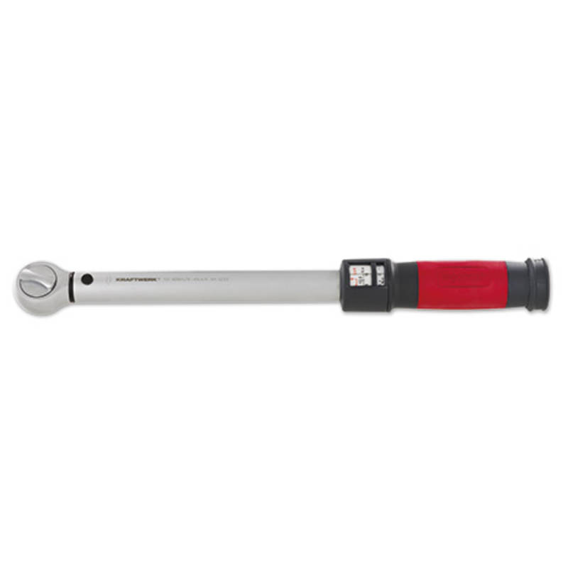 Sehr hochwertiger Drehmomentschlüssel von Kraftwerk mit einer einfachen ablesbaren Anzeige. Das Drehmoment wird per herausziehbarem Handrad hinten am Griff mechanisch eingestellt.