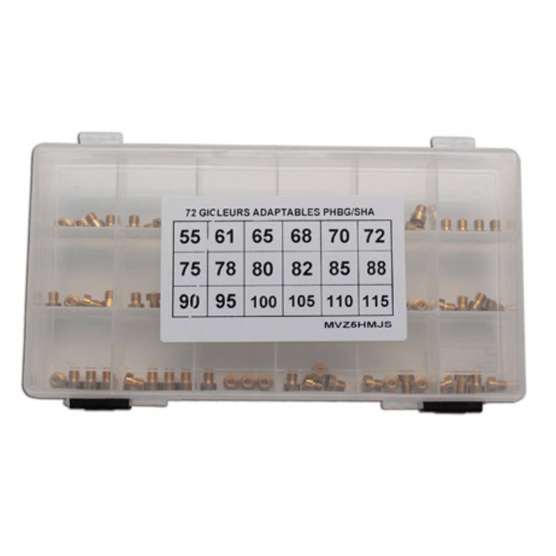 Ideales Kit zum Abstimmen deines Vergasers. 72 Hauptdüsen (4Stk. je Grösse) werden in einer praktischen Kunststoffbox geliefert, schön übersichtlich sortiert und jederzeit Griffbereit. Dazu noch einiges günstiger als wenn ihr die Düsen einzeln bestellt. Für alle Dellorto PHBG/SHA Vergaser.