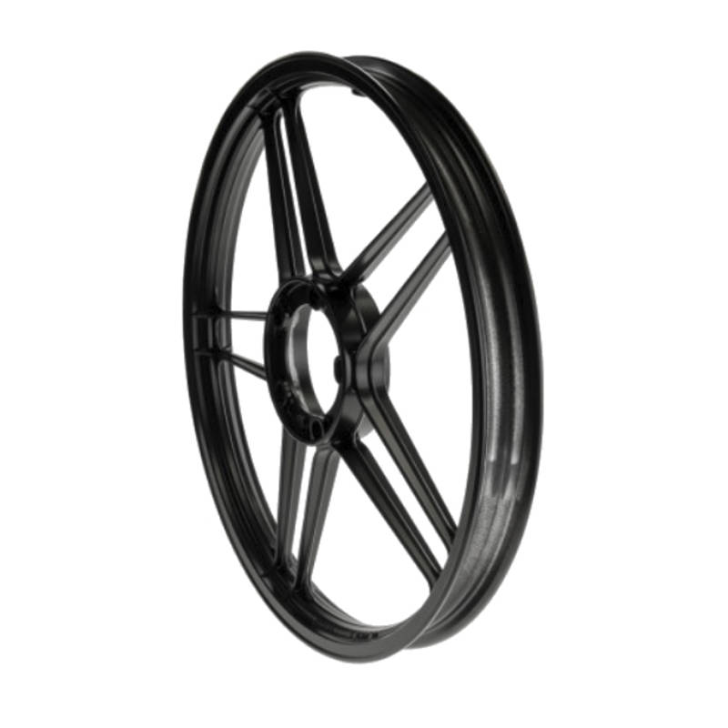 Die Felge ist schwarz lackiert und kann als Vorderrad sowie auch als Hinterrad verwendet werden.