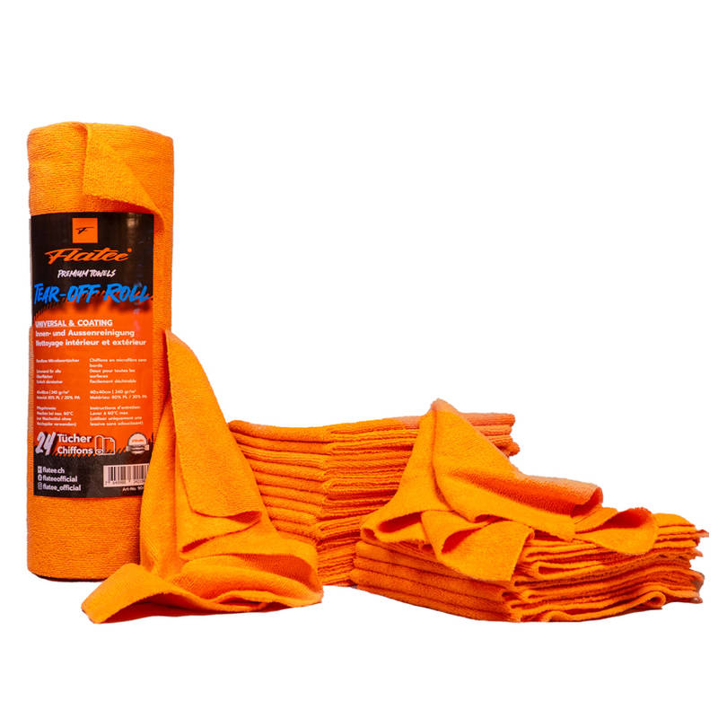 Flatee Tear-off Roll Mikrofaser Tuch, 24 Stück, 240GR/M2, 40×40 cm orange.