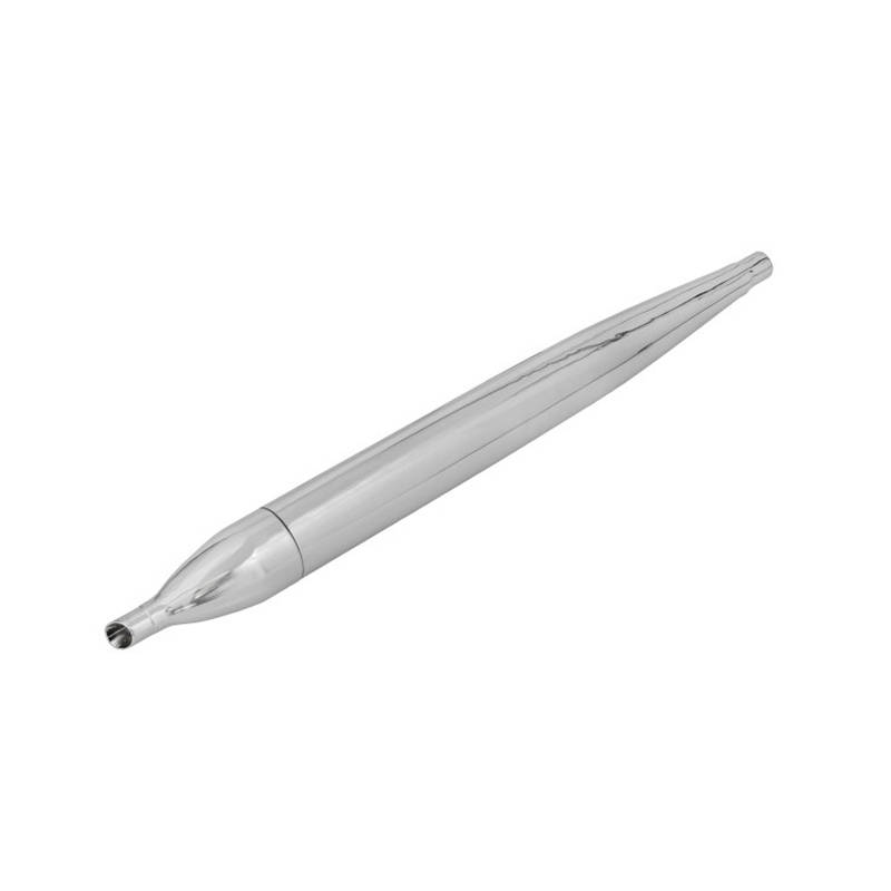 Verchromte Resoflöte, unauffällig und leistungsstark. Optisch ein gewöhnlicher Flötenauspuff, doch im Inneren ist ein Gegenkonus eingearbeitet.