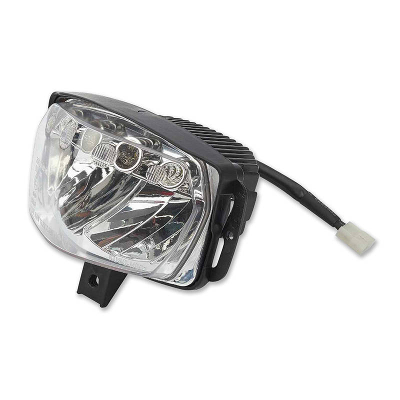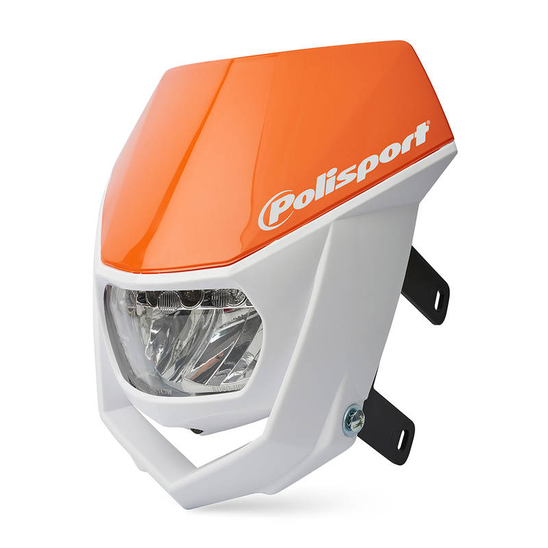 C.E.-Geprüfte LED Scheinwerfermaske mit Standlicht, Abblendlicht und Fernlicht für Cross- und Supermoto-Motorräder. Erhältlich in den markentypischen Farben.