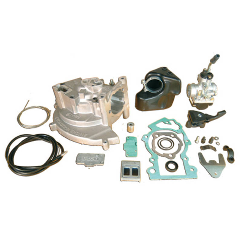 Das ultimative Renngehäuse für Ciao/Si – Motoren ! Top Verarbeitung, riesiger Membraneinlass, ideal abgestimmte Steuerzeiten und ein mitgeliefertes 19mm Dell’Orto PHBG Vergaserkit inkl Stutzen und Luftfilter machen dieses High-End Produkt zum unverzichtbaren Must-Have für alle Racer. Gehäuse für Unterbrecherzündung. Passende Rennkurbelwelle (12’000, 12’001,10410 oder 10’415) erforderlich.