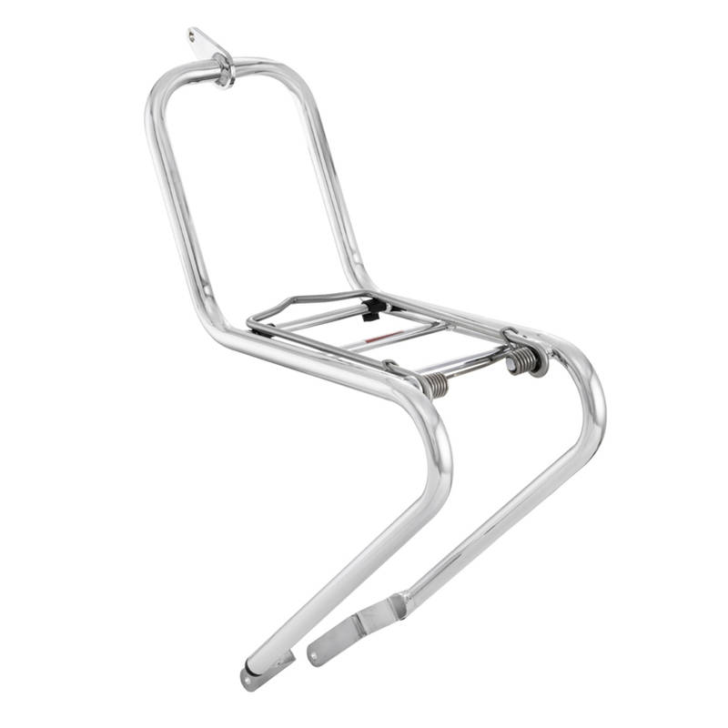Gepäckträger welcher an Piaggio Ciao Modellen vorne befestigt werden kann. Dieser starre Gepäckträger kann an so ziemlich jedem Piaggio Ciao befestigt werden, also auch an den ersten Serien welche noch nicht über die Innengewinde an der Gabel verfügen.