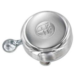 Schwarze Klingel mit eingestanztem Blockmuster.