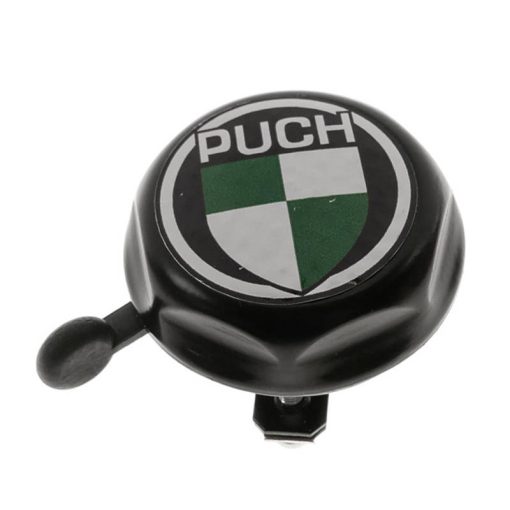 Schwarze Klingel mit aufgeklebtem Puch Logo.