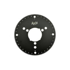 Gradscheibe aus 1 mm dickem Chrom-Stahl gelasert. Damit kann die Einlasssteuerzeit an deinem Piaggio Ciao, SI, Bravo und Boxer Mofa / Moped gemessen werden.
