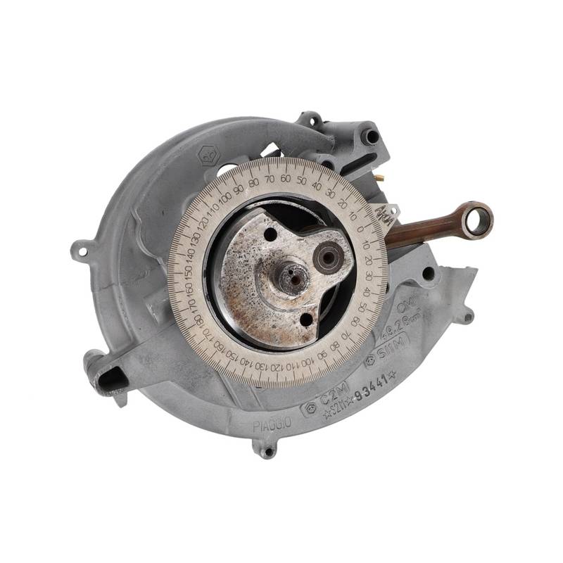 Zur Ausmessen steckst Du Deine Kurbelwelle am Besten mit unserem Testlager / Lagerdummy Art.Nr. HT3616 in die grosse Gehäusehälfte und stellst die Kurbelwelle auf den oberen Totpunkt (OT) so dass die Gradscheibe und Welle entsprechend auf 0° stehen und übereinstimmen. Jetzt markierst Du deine Kurbelwelle damit Du durch Drehen der Kurbelwelle ablesen kannst wann dein Einlass genau öffnet resp. schliesst. So kannst Du exakt deine Einlasssteuerwinkel messen und dann entsprechend am Verdicherfenster und-/ oder der Kurbelwelle dein Tuning vornehmen.