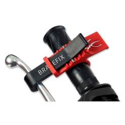 Das Brakefix wird am Handbremshebel und Lenker montiert. Die Bremse blockiert nun das Vorderrad und Ihr Motorrad steht fest und sicher.