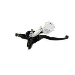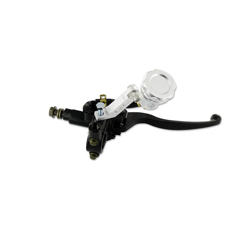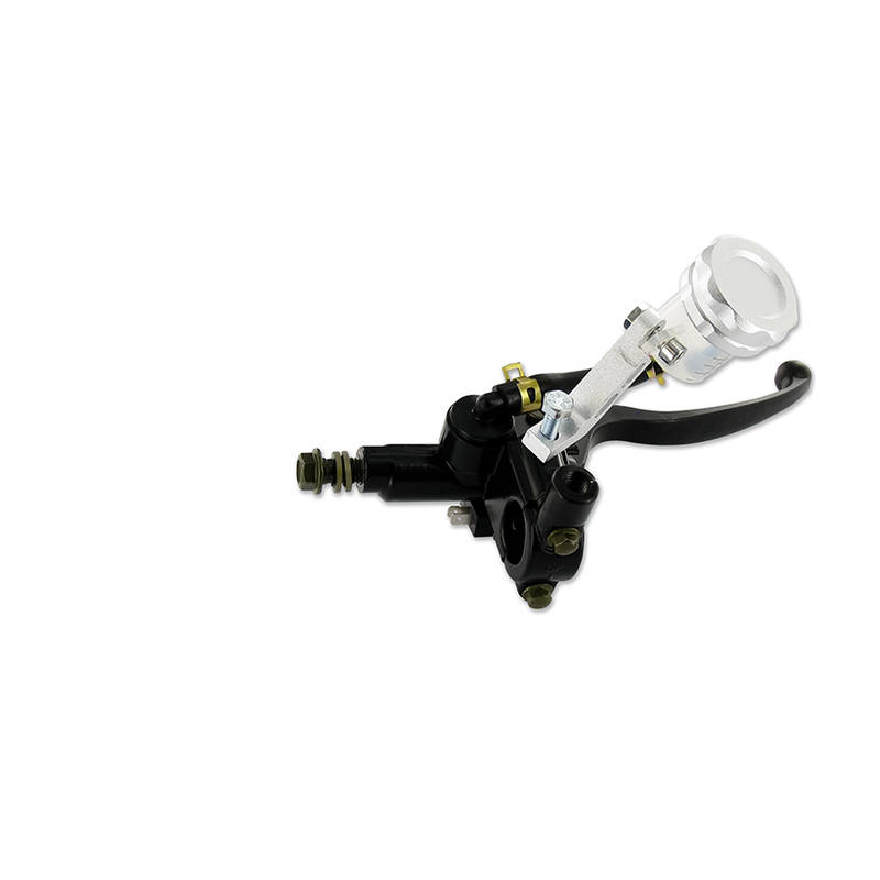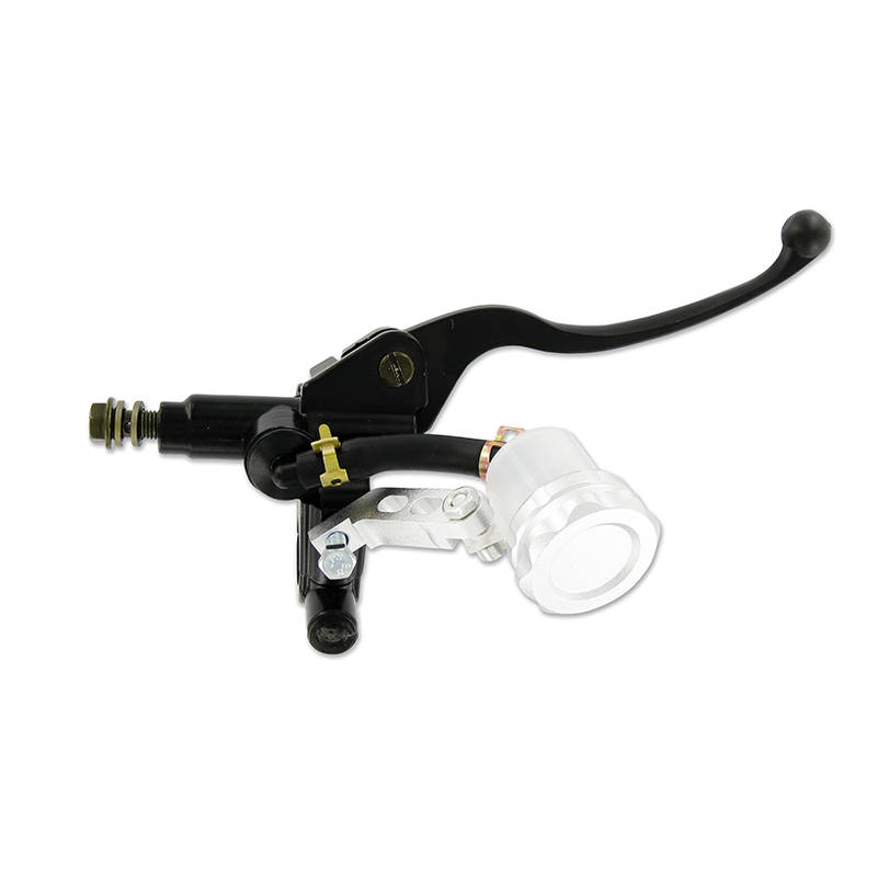 Komplette Handbremspumpe mit radial angeordnetem Zylinder. Sie wird komplett mit Bremshebel, Expansionsgefäss und Bremslichtschalter geliefert.