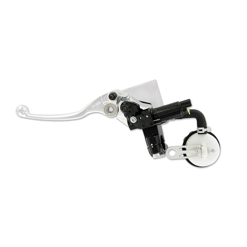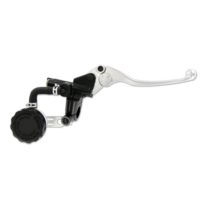 Komplette Handbremspumpe mit Bremslichtschalter. Sie wird komplett mit Bremshebel (verstellbar mittels Stellrad) und Expansionsgefäss geliefert und beinhaltet zudem eine Rückspiegelhalterung M10x1.25mm.