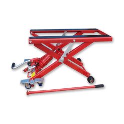 Der hydraulische Scherenlift ist mit einem fussbetätigten Hydraulikkolben ausgestattet der das Motorrad auf der Plattform in eine Höhe von 340mm bis maximal 830mm anhebt.