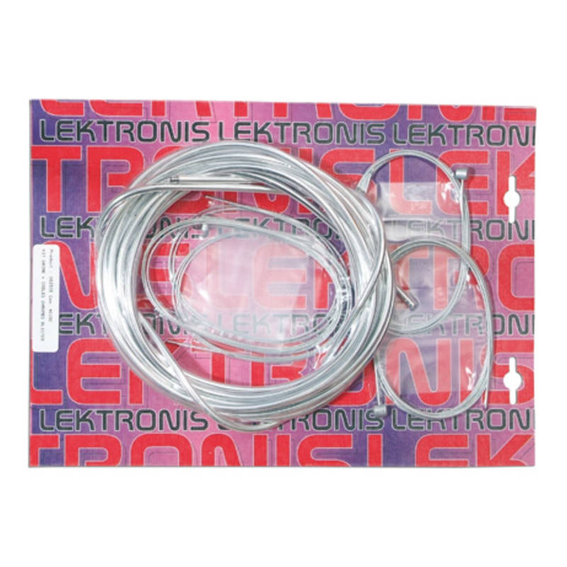 Komplettes Kabelset bestehend aus 6m ungeschnittener Kabelhülle, 2 Bremslitzen, 1 Gaskabel (Bing Vergaser passend), 1 Gaskabel (Dell’orto – Nippel 3.5mm rund) 1 Dekokabel, 1Starterkabel, 1 Schaltkabel inkl. 10 Stück Kabelendhülsen 5mm.