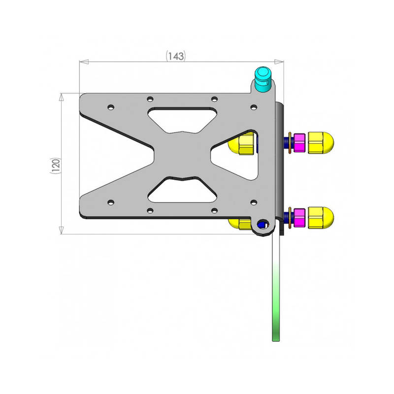 Materialstärke: Aufnahme für Radachse 5mm, Aufnahme Nr.-Schild 3.5mm