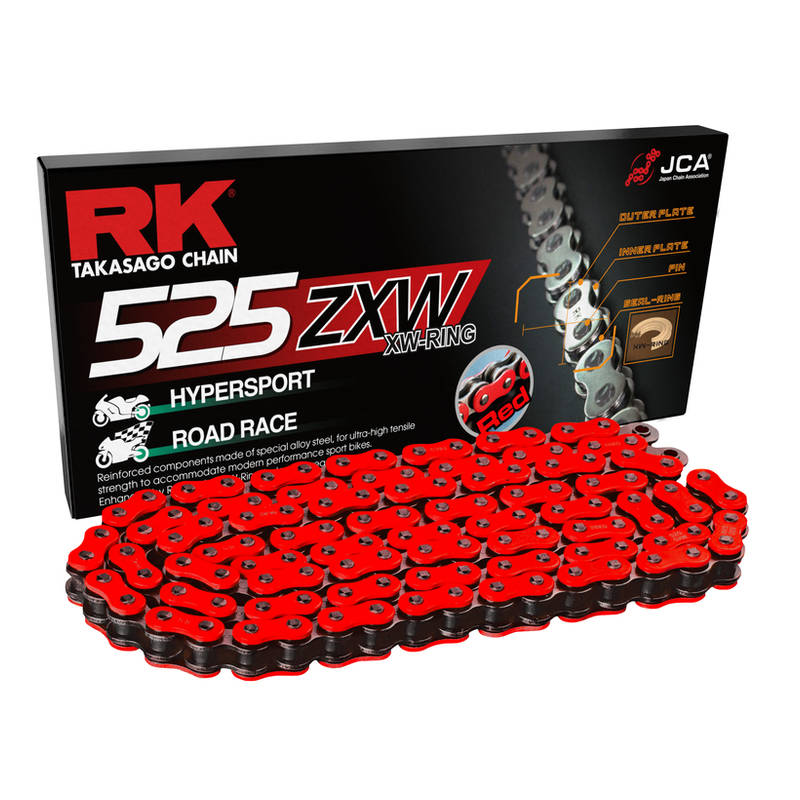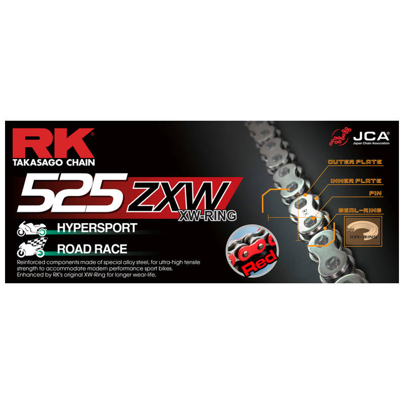 Entwickelt, um die stärkste, langlebige Premium-Qualität XW-Ring ausgestattet Kette auf dem heutigen Markt, mit höchster Zugfestigkeit der RK-Serie und hohe Steifigkeit um sofortige Reaktion beim Beschleunigen zu garantieren.