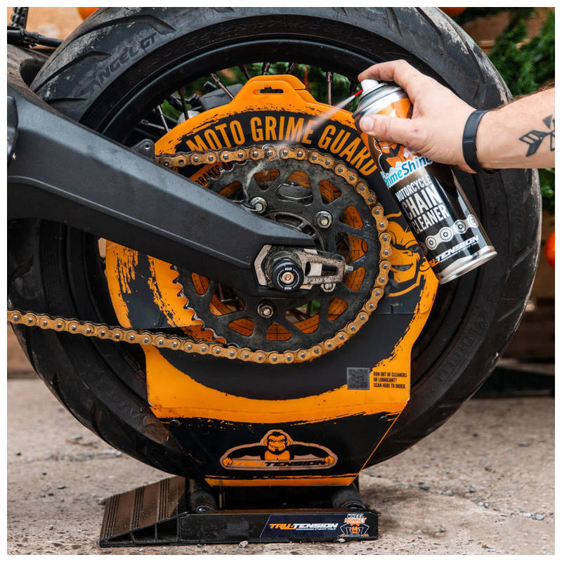 Schützt das Hinterrad sowie die Bremsscheibe vor Dreck und Öl bei der Reinigung der Kette.