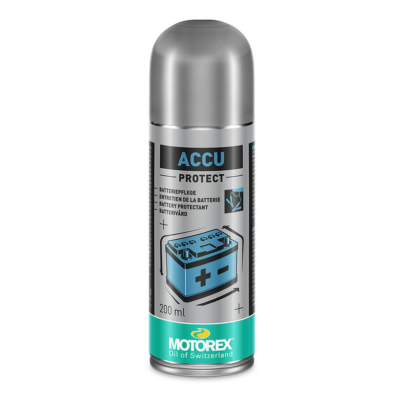 MOTOREX ACCU PROTECT SPRAY schützt Batteriepole, Polklemmen, Steckverbindungen, Anlasser- und Anschlusskabel.