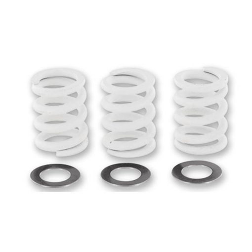 Kupplungsfedern für die SX50 Kupplung. Das Set besteht aus 3 Federn. Die Einkupplungsdrehzahl (Schlupfpunkt) ist je nach Öl, Korb, Belag, Spaltmass, Setup und Vorspannung bei ca. 5-7‘000 U/min. Die Federn sind aus Edelstahl und halten bis 240 Grad Celsius ohne Ermüdung aus.