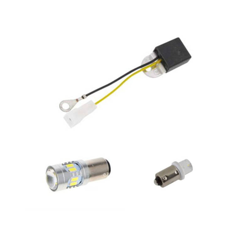 Umrüstkit auf 6V LED, besteht aus Scheinwerfer Birne BA15d/BA9s und Spannungsregler.