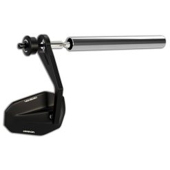 Kurzer verstellbarer Arm, schwarz eloxiert, kombiniert mit polierten Fasen, geeignet für Lenker mit einem Aussendurchmesser von 7/8 Zoll und 1 Zoll. Der Spiegel ist links und rechts verwendbar