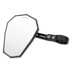 Der Spiegel ist links und rechts verwendbar. Montierbar entweder mit den mitgelieferten Reduzierhülsen direkt am Lenkrohr oder an optional erhältlichen Lenkerenden mit Lenkerendenspiegelaufnahme. (siehe Zubehör)