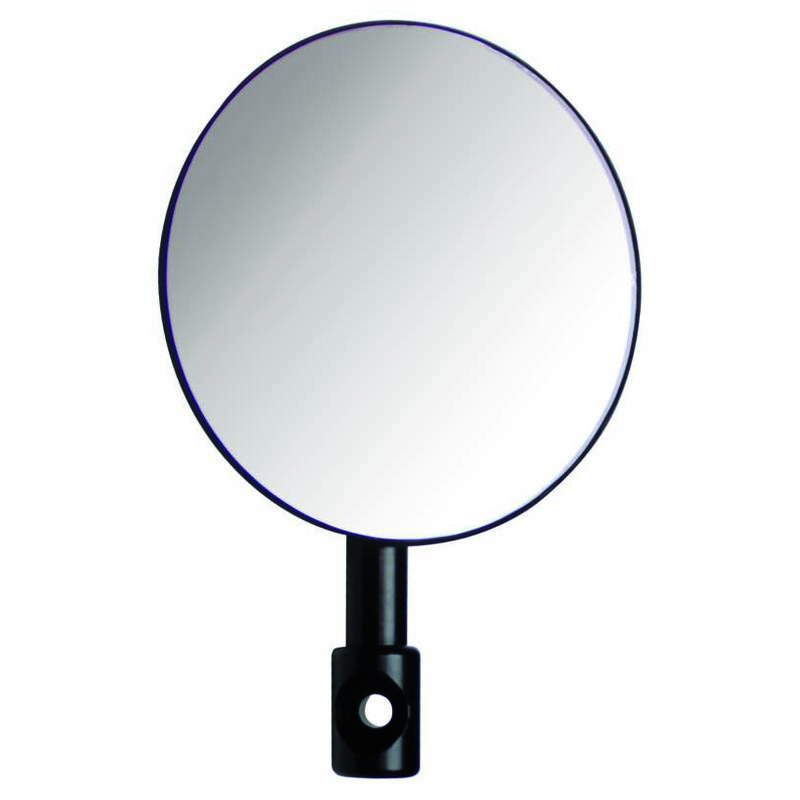 Schwarzer, runder Spiegel mit konvexem Glas (2.5mm), geradem und kurzem Arm in Schwarz.