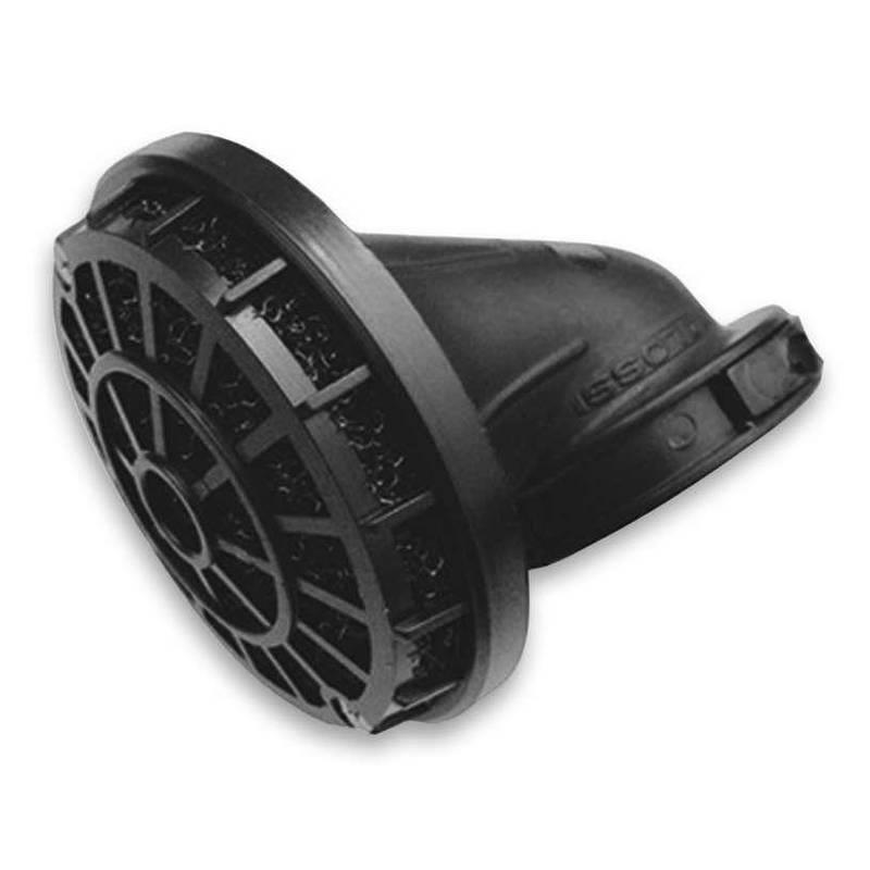Rennluftfilter der Qualitätsmarke „Malossi“ mit um 90° abgewinkeltem Anschluss aus Kunstoff.