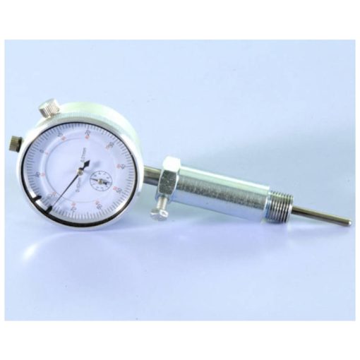Das Werkzeug wird in das Zündkerzengewinde eingeschraubt. Mittels der Messuhr lässt sich der obere Totpunkt exakt ermitteln. Durch das Drehen der Kurbelwelle kann nun die Stellung des Kolbens in 0.01mm Schritten vor oder nach OT ermittelt werden