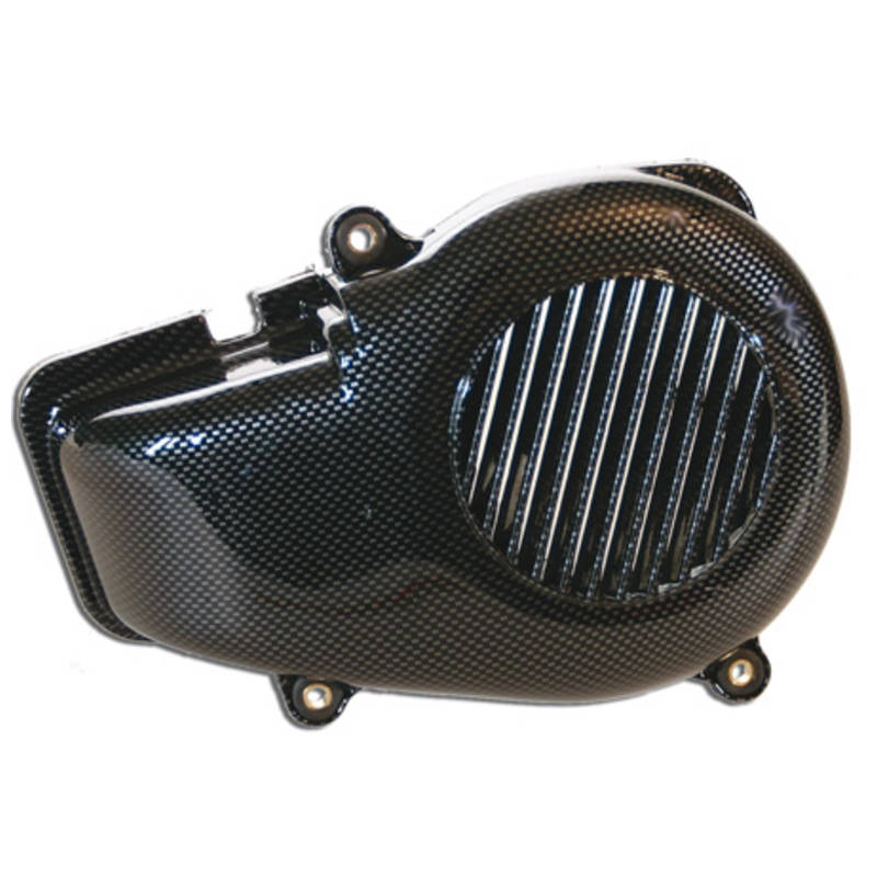 Komplettes Lüftergehäuse für stehende Minarelli-Motoren von TNT. Einfacher Austausch und grosse optische Wirkung.