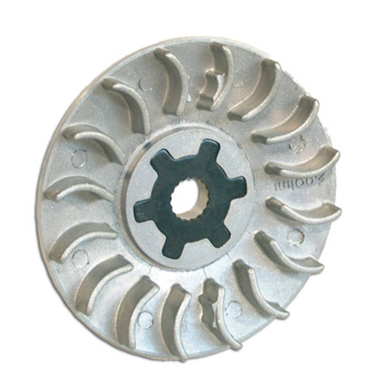 Das Lüfterrad sitzt auf der Kurbelwelle vor dem Variator. Grössere Lüfterschaufeln sorgen für bessere Kühlung der Variomatik. Die Steigung der Scheibe ist auf die Variomatik von POLINI abgestimmt, kann aber auch auf dem originalen Variator als Ersatzteil gefahren werden.