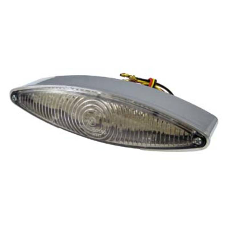 Homologiertes LED-Rücklicht mit Bremslichtfunktion. Eine LED-Kennzeichenbeleuchtung ist im Rücklichtkörper integriert.