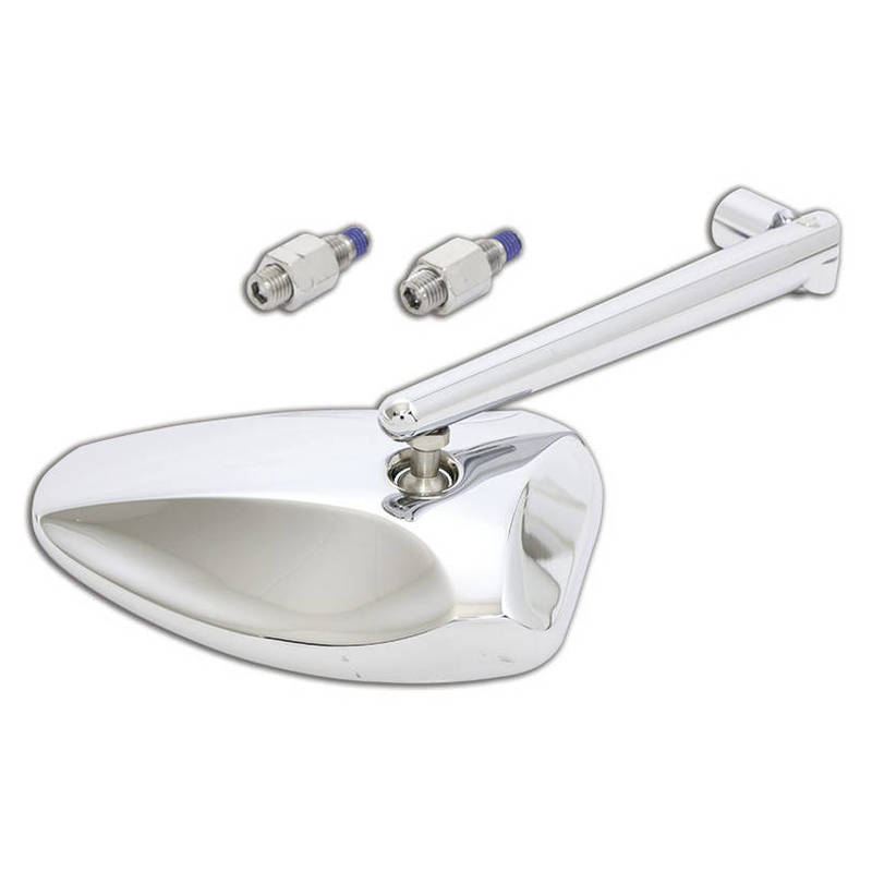 HIGHSIDER Spiegel FERRARA 2, verchromter Aluminium Kopf, Arm verstellbar, für linke und rechte Seite verwendbar, inkl. extra Adapter M10x1.25mm Linksgewinde, E-geprüft