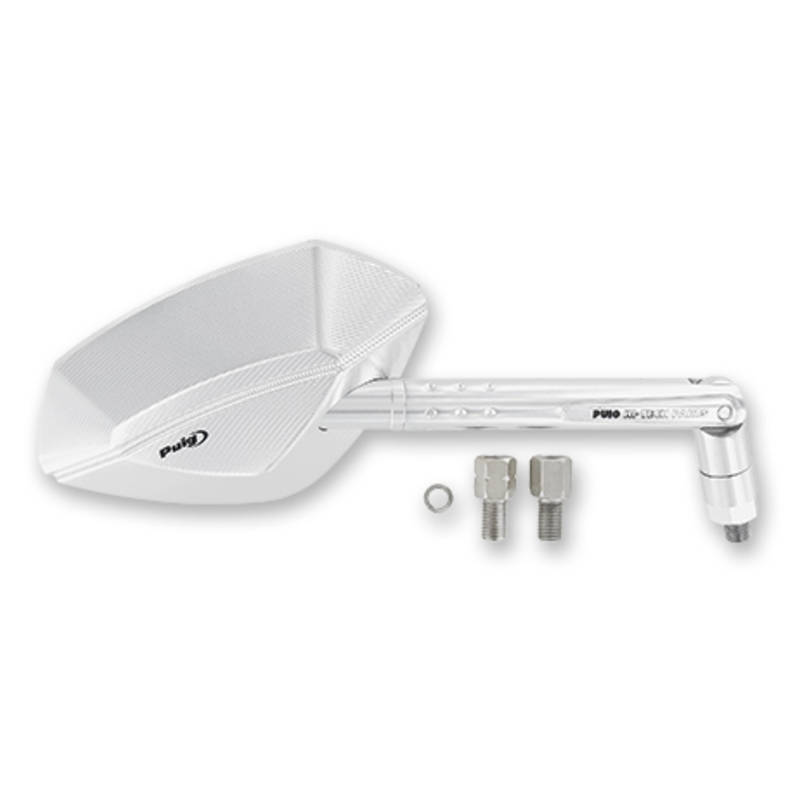 Homologierter Hi-Tech Rückspiegel aus CNC gefrästen Aluminium, transparent eloxiert von Puig Hi-Tech Parts. Nahezu voll einstellbar gewährleistet er eine optimale Sicht nach hinten und verleiht dem Motorrad eine edle Optik.