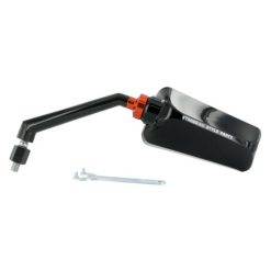 Die Styling-Abteilung von Stage6 hat sich die beliebten F1-Spiegel vorgenommen, die von vielen Herstellern seit Jahren unverändert angeboten werden, und ihnen ein ordentliches Redesign und Qualitätsupgrade verpasst. Die Einstellung erfolgt über ein großes Kugelgelenk, das sich in einem weiten Bereich justieren lässt. Die Spiegelarme aus Metall wurden recht kurz gehalten, um auch den optischen Aspekt nicht aus den Augen zu verlieren. Fixiert wird der Spiegel über die orange eloxierte Feststellmutter; ein spezielles Tool ist im Lieferumfang enthalten. Ausgeliefert werden die Spiegel mit einem kurzen M8-Gewinde; ein Adapter für durchgebohrte Spiegelaufnahmen.l