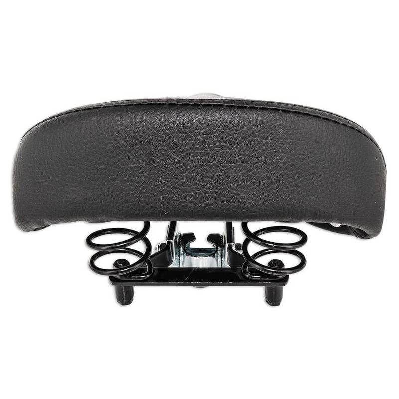 Das schön verarbeitete Kunstleder erlaubt auch bei schlechtem Wetter die Ausfahrt fortzusetzen und ist zudem leicht zu pflegen. Die zwei Federn im hinteren Teil setzen sich optisch gekonnt in Szene und der Flachrahmen gibt dem Sattel eine bedeutende Linie.