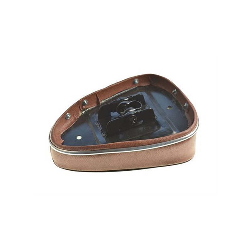 Denfeld replica Sitzbank in Braun. Bequem gepolstert, brauner Kunstlederbezug und fürs Auge die edle Chromleiste. Universell nutzbar für sämtliche Mofas welche einer Ø 22mm Sattelstütze haben.