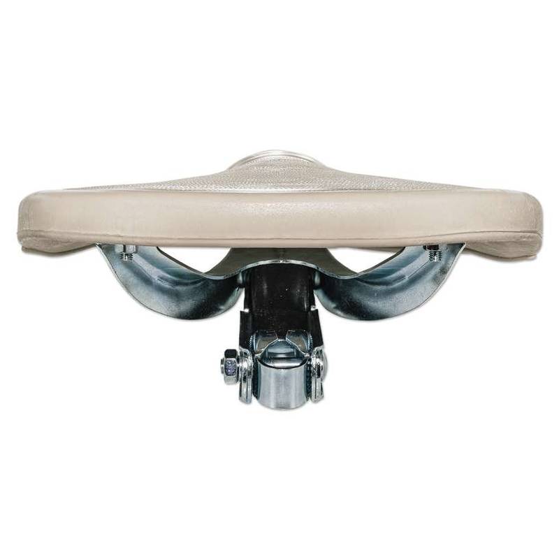 Verzinktes Stahlgestell, dass mit dem Kunststoffgummi bezogen ist. Etwas breiter und damit noch bequemer als der Original-Sattel – All Wetter Tauglich.